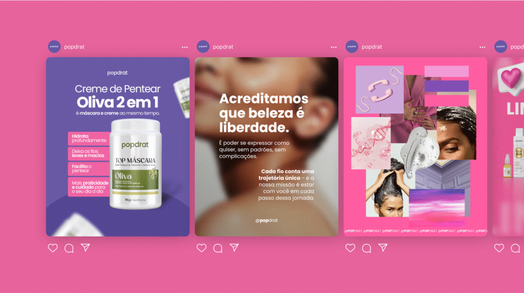 A Collb Comunicação assumiu a PopDrat em um momento de transformação profunda, cuidando de toda a estratégia de marca, da gestão de redes sociais ao branding, passando por materiais promocionais e lançamentos de produtos.